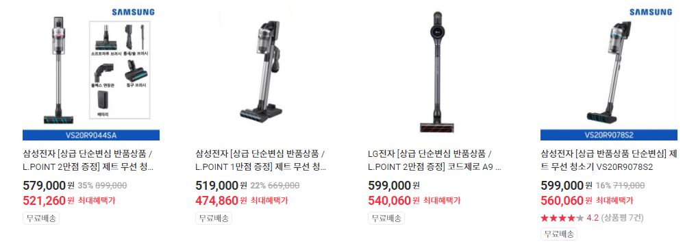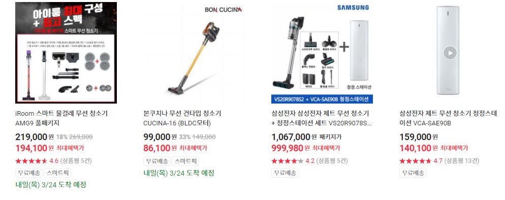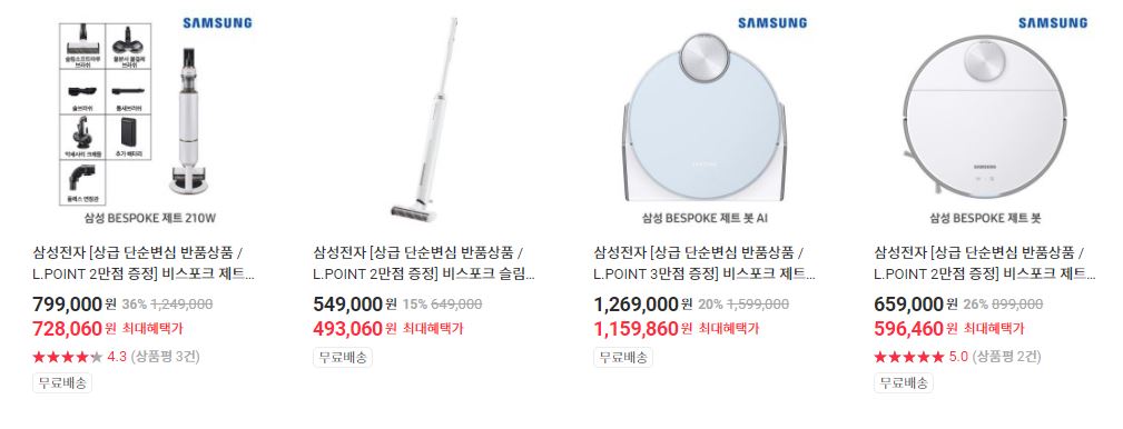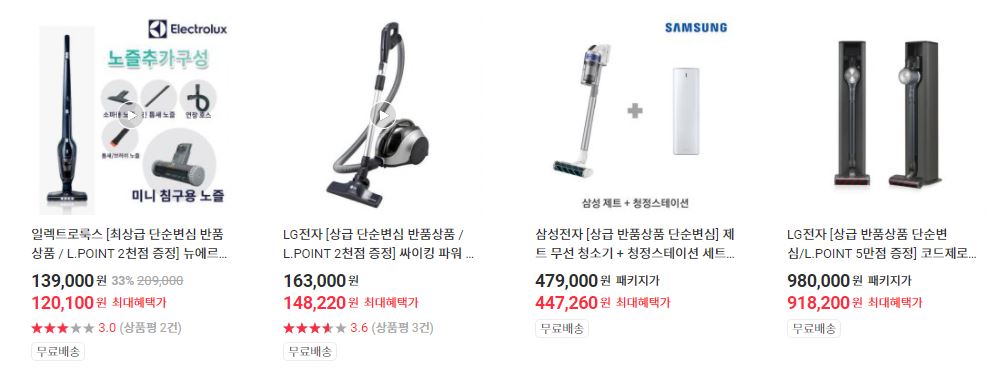 할인 품목 : 로봇청소기, 무선청소기