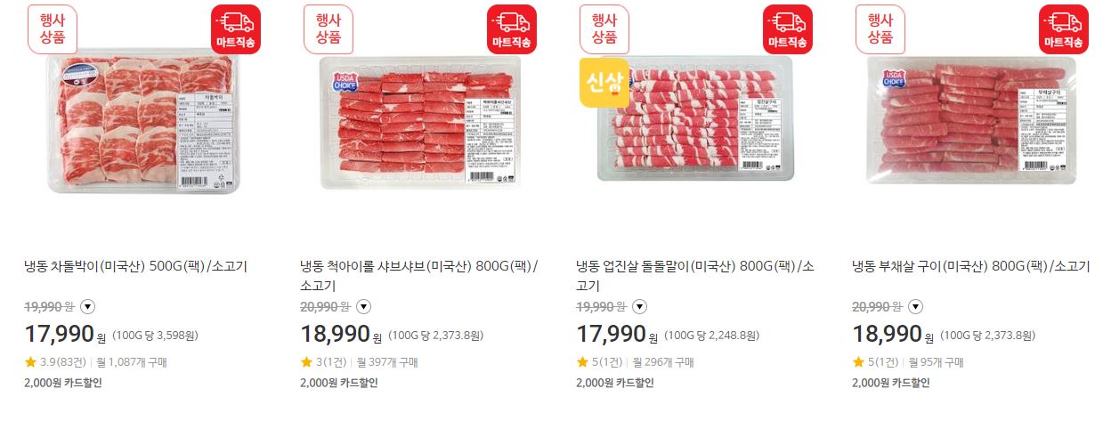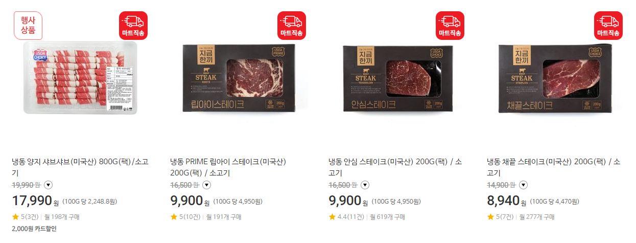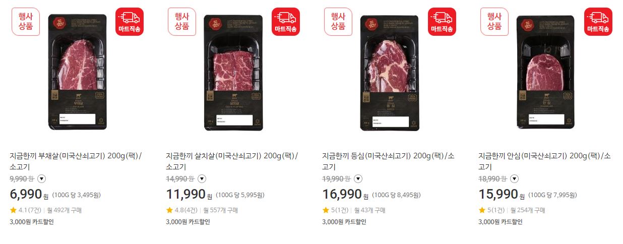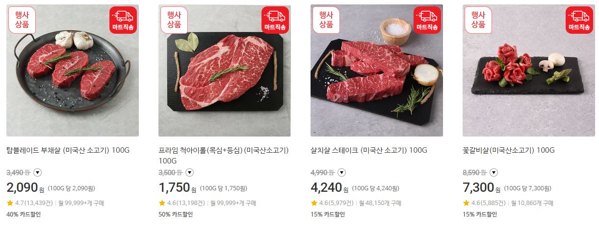 할인 품목 : 프라임 척아이롤, 부채살 등