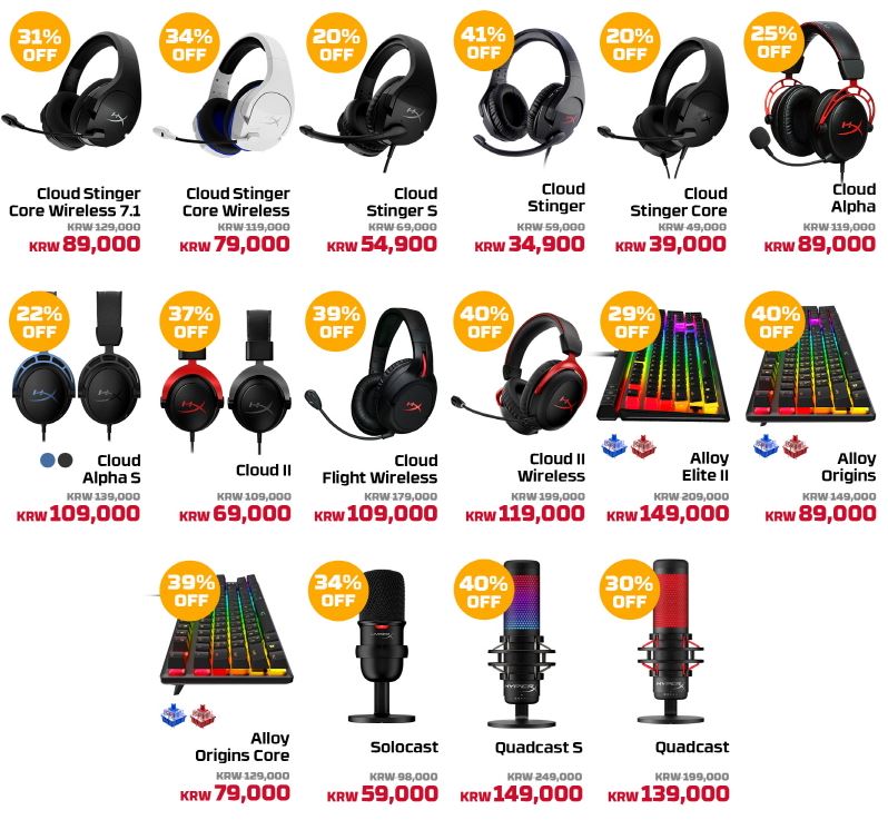 하이퍼X 다양한 제품을 할인 판매하네요.