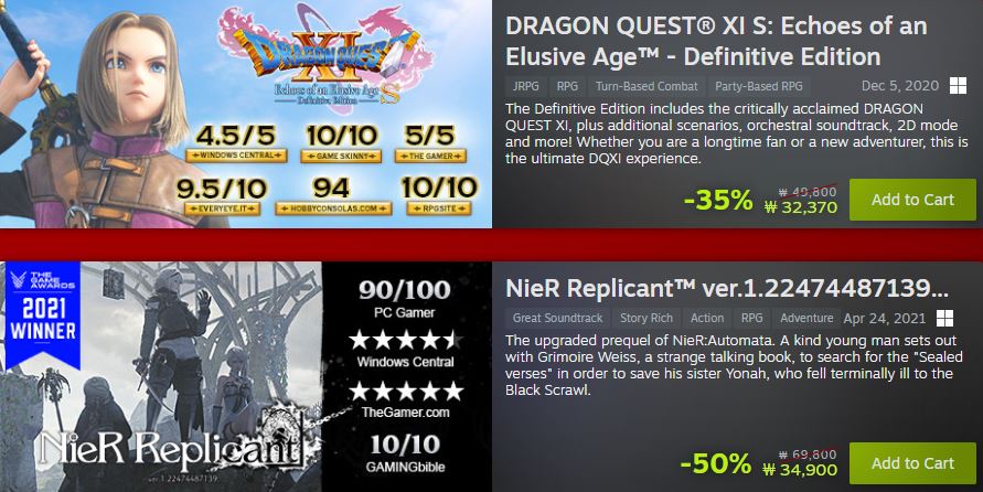 스퀘어 에닉스 다양한 게임을 할인 판매하네요.