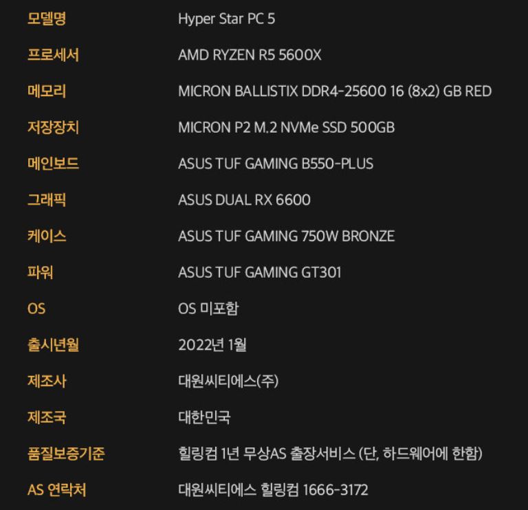 하이퍼스타 게이밍 데스크탑 라이젠5 5600X/16GB/500GB/RX6600 조립PC 할인 정보 [링크]