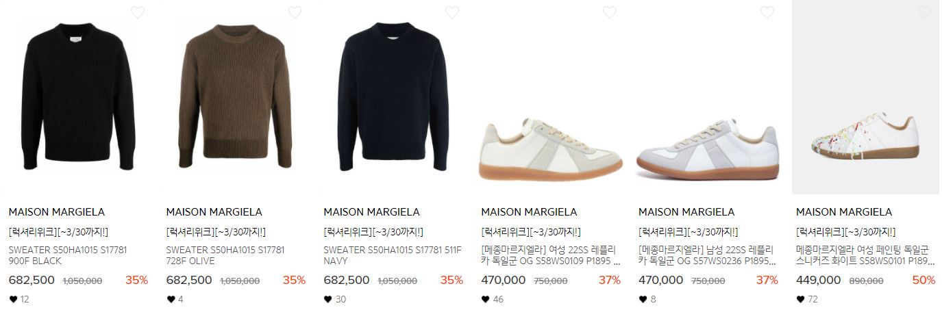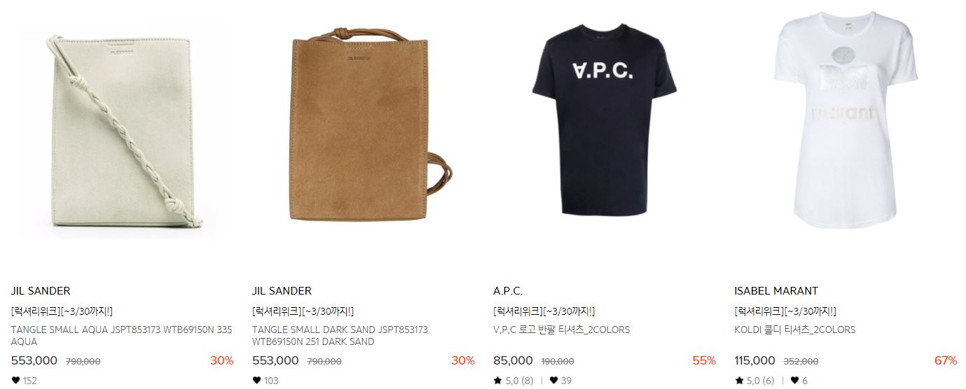 할인 품목 : 의류, 가방, 신발 등