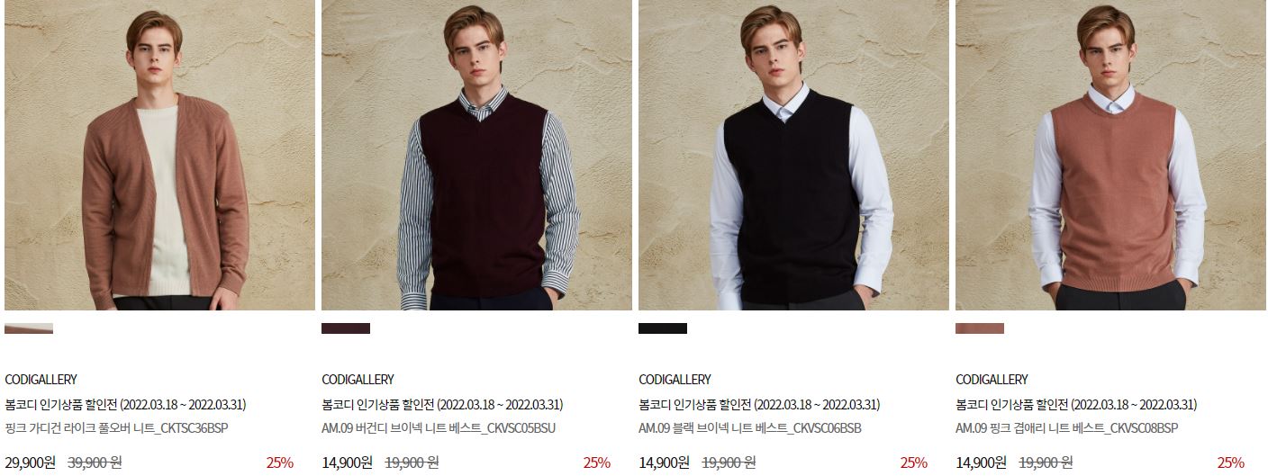 할인 품목 : 코트, 팬츠, 니트 등