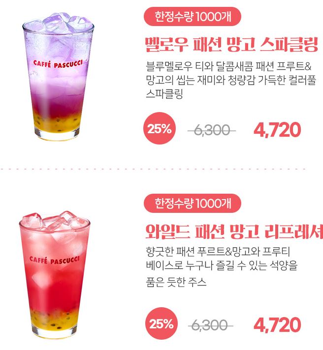 파스쿠찌 신메뉴 5종 25% 할인 정보 포스팅입니다.