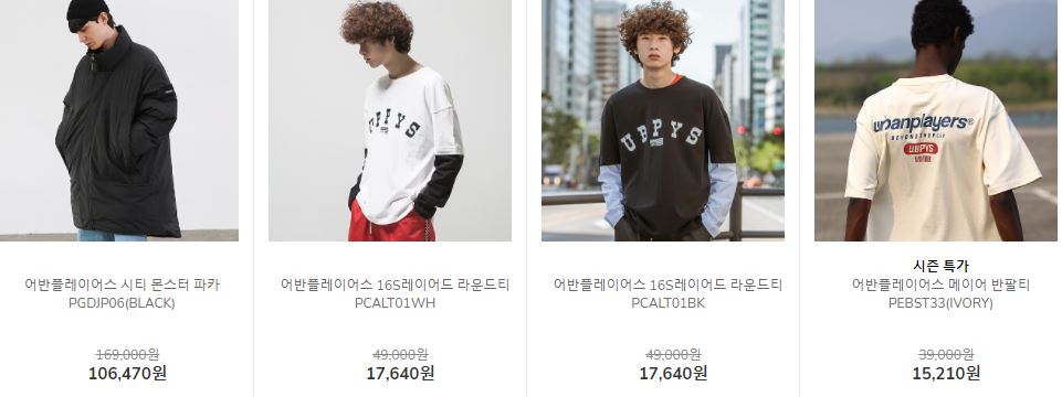 어반플레이어스 다양한 제품을 할인 판매하네요.
