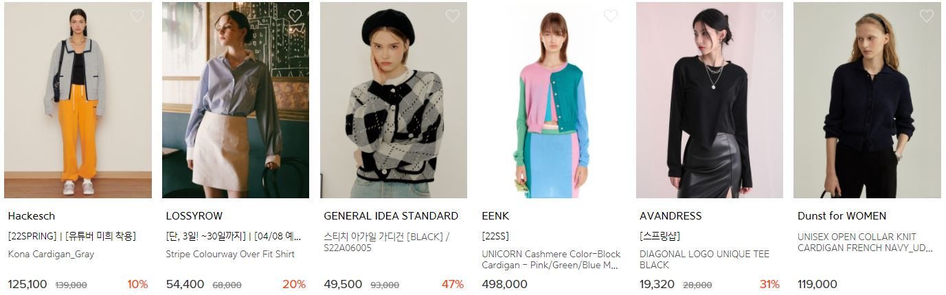 할인 품목 : 가디건, 니트, 티셔츠 등