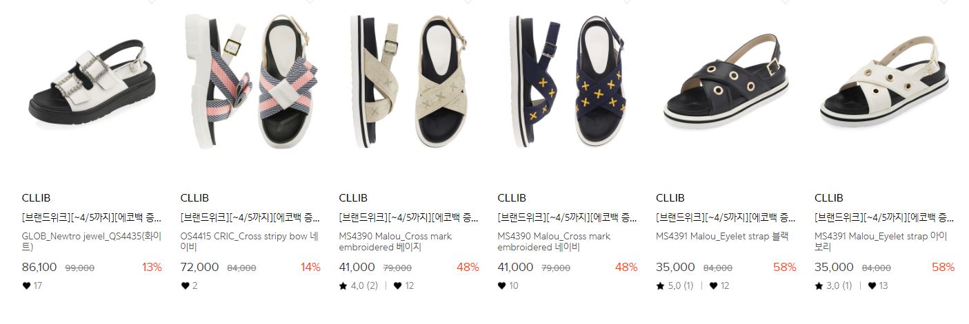 할인 품목 : 로퍼, 샌들, 부츠 등