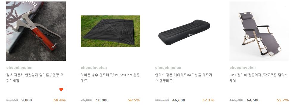 할인 품목 : 캠핑용품, 의류, 무선충전기 등