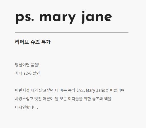 ps. mary jane 최대 72% 세일 정보 [링크]