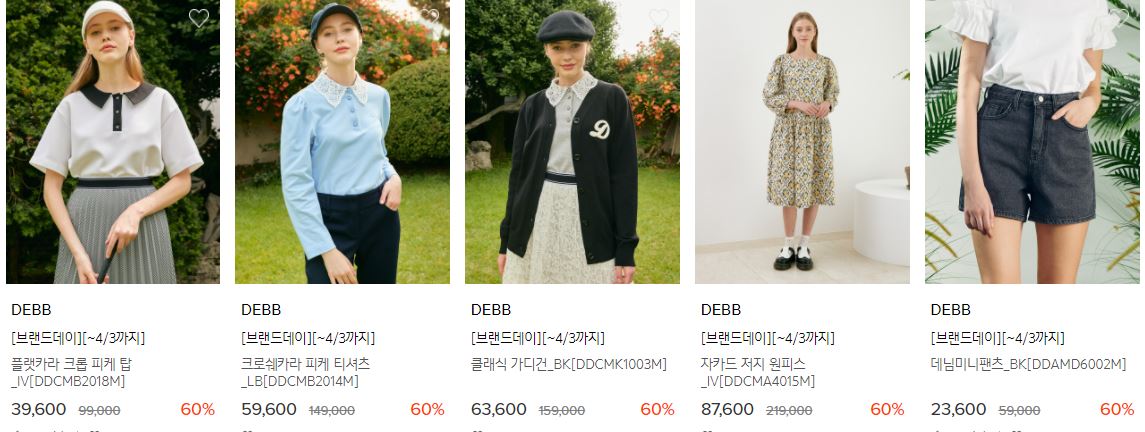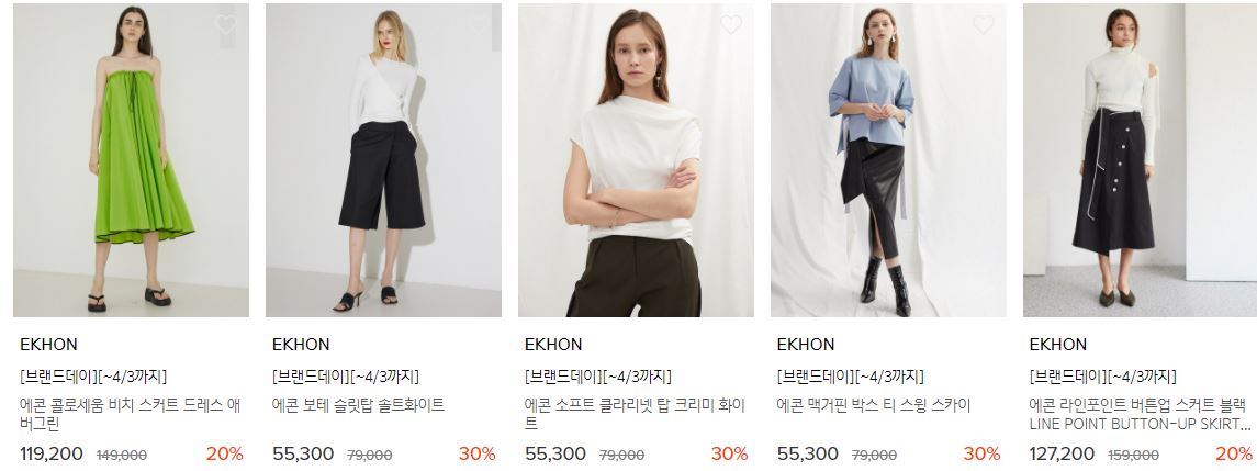 할인 품목 : 원피스, 티셔츠, 팬츠 등
