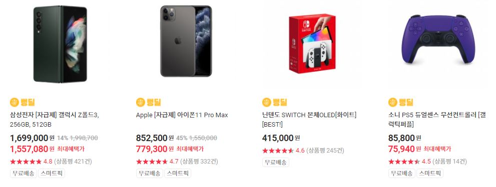할인 품목 : 데스크탑, CPU, 휴대폰, 게임기 등