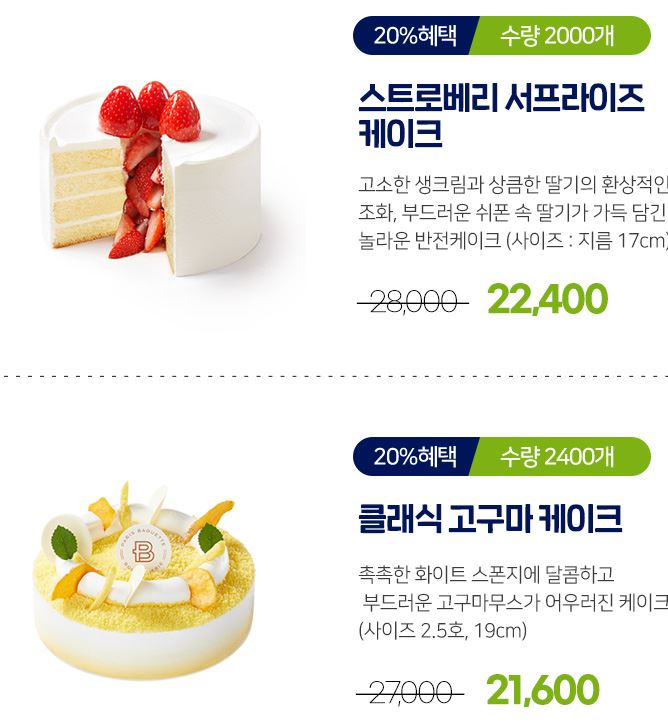 할인 메뉴 : 빵심세트, 클래식고구마케이크 등