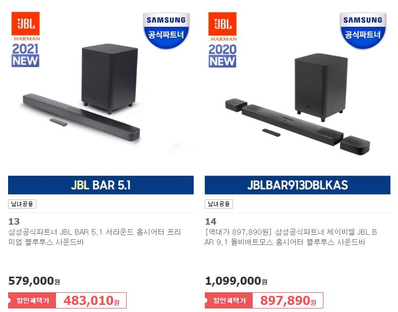 할인 품목 : 사운드바, 스피커, 헤드셋 등