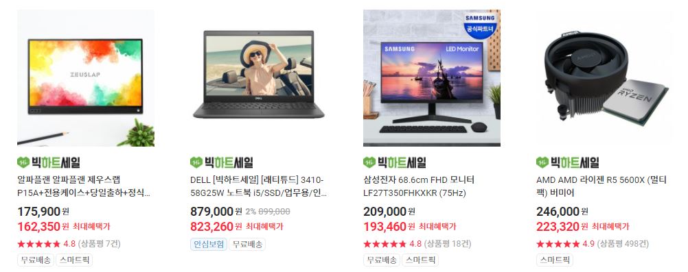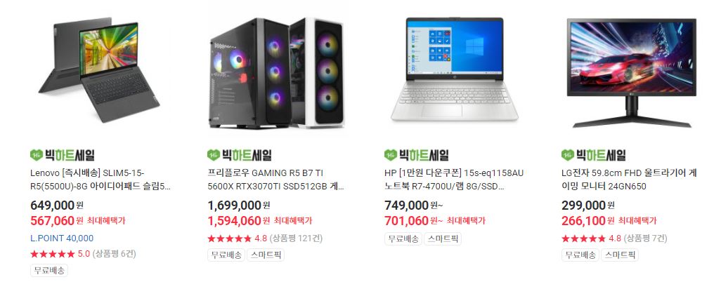 할인 품목 : 컴퓨터, TV, 오큘러스 퀘스트2 등