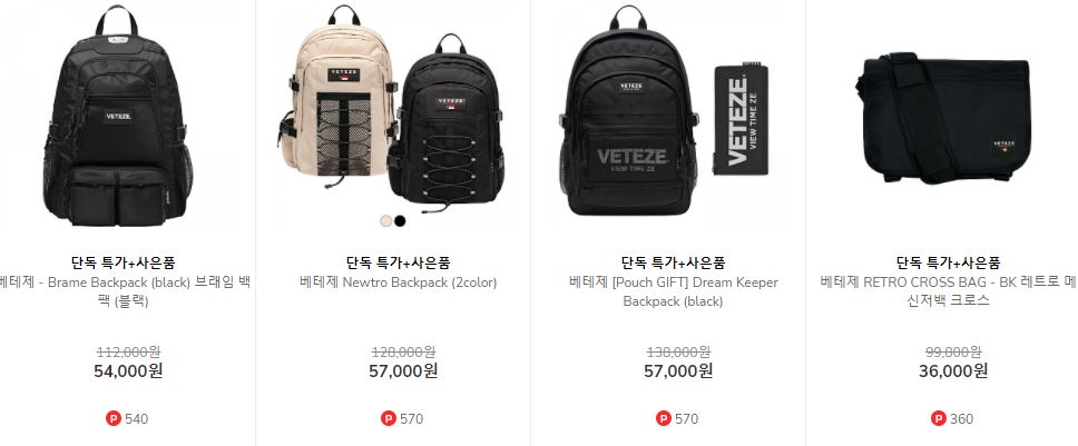할인 품목 : 백팩, 모자, 티셔츠 등