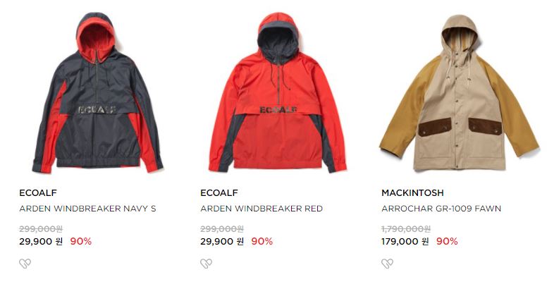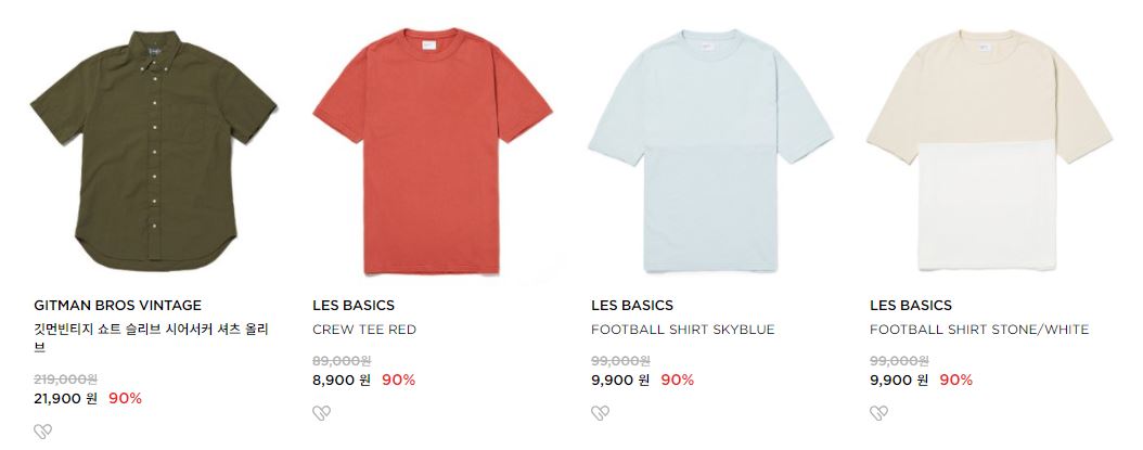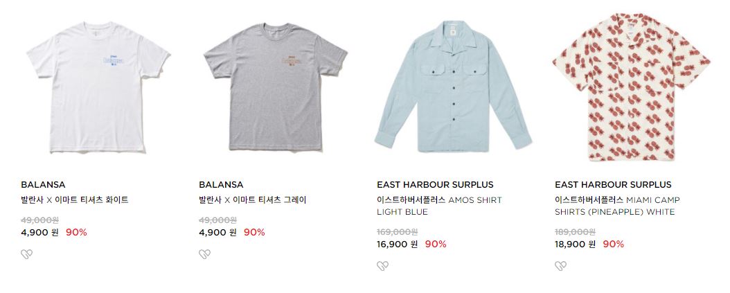 할인 품목 : 점퍼, 티셔츠, 팬츠 등