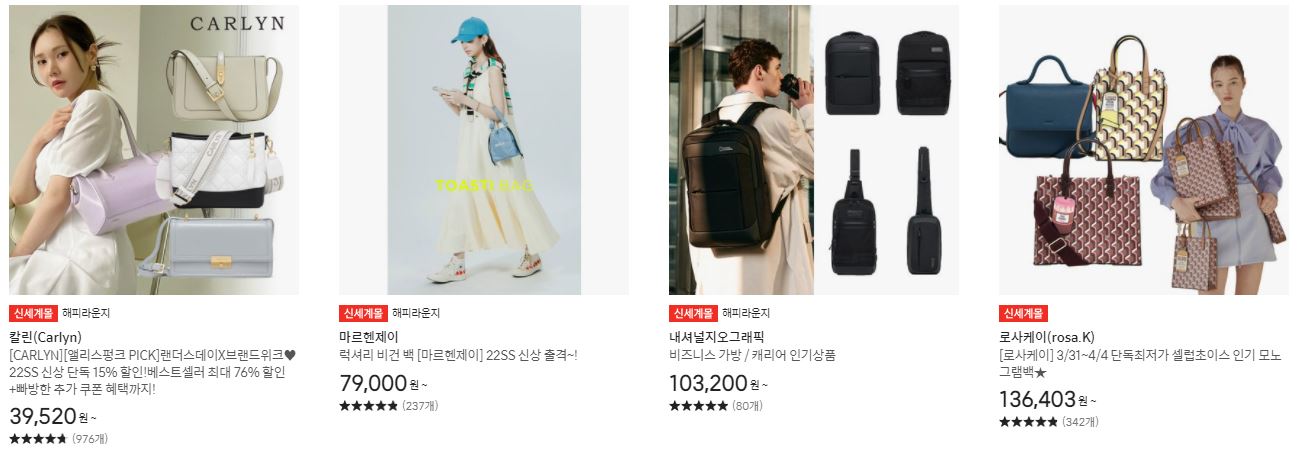 할인 품목 : 백팩, 크로스백, 지갑 등