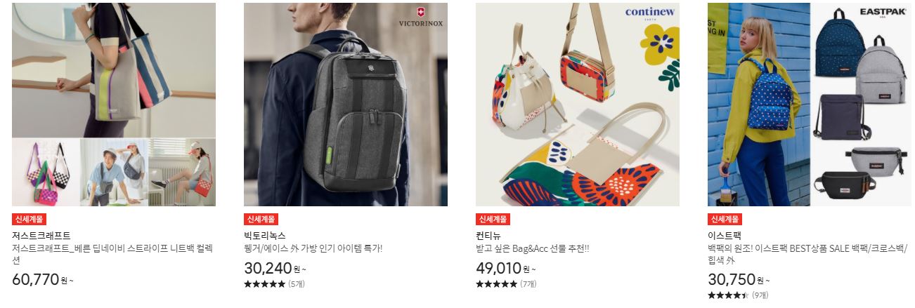 할인 품목 : 백팩, 크로스백, 지갑 등