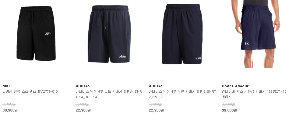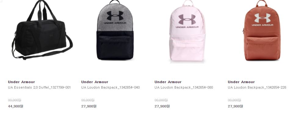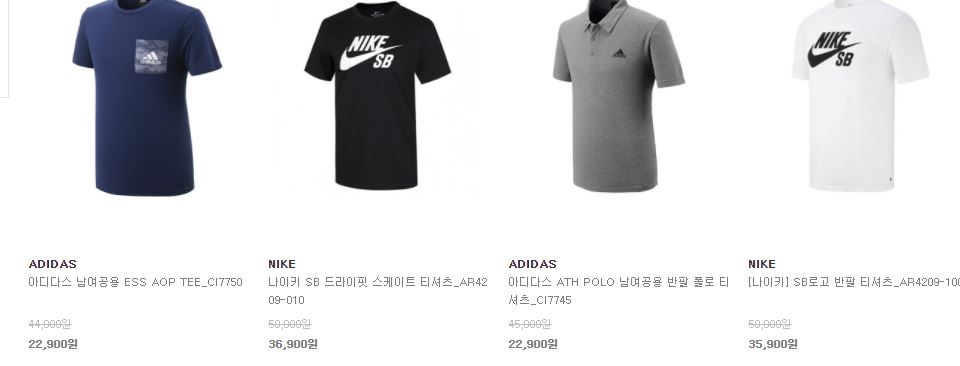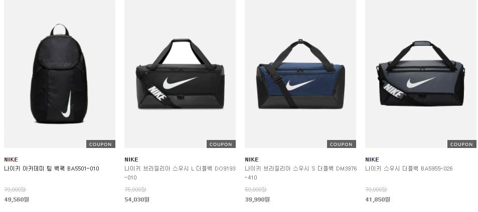 할인 품목 : 운동화, 티셔츠, 가방 등