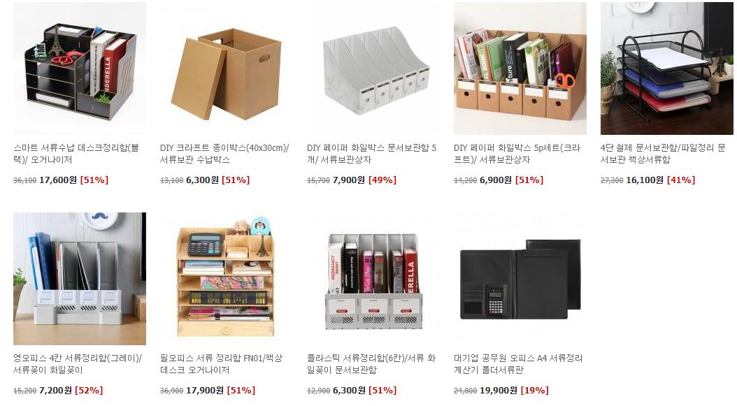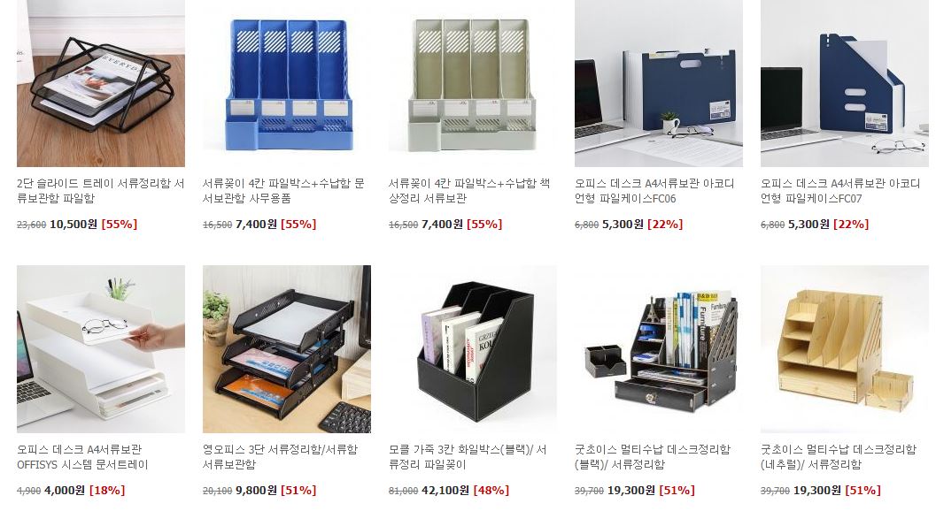 할인 품목 : 서류정리함, 책상정리함 등