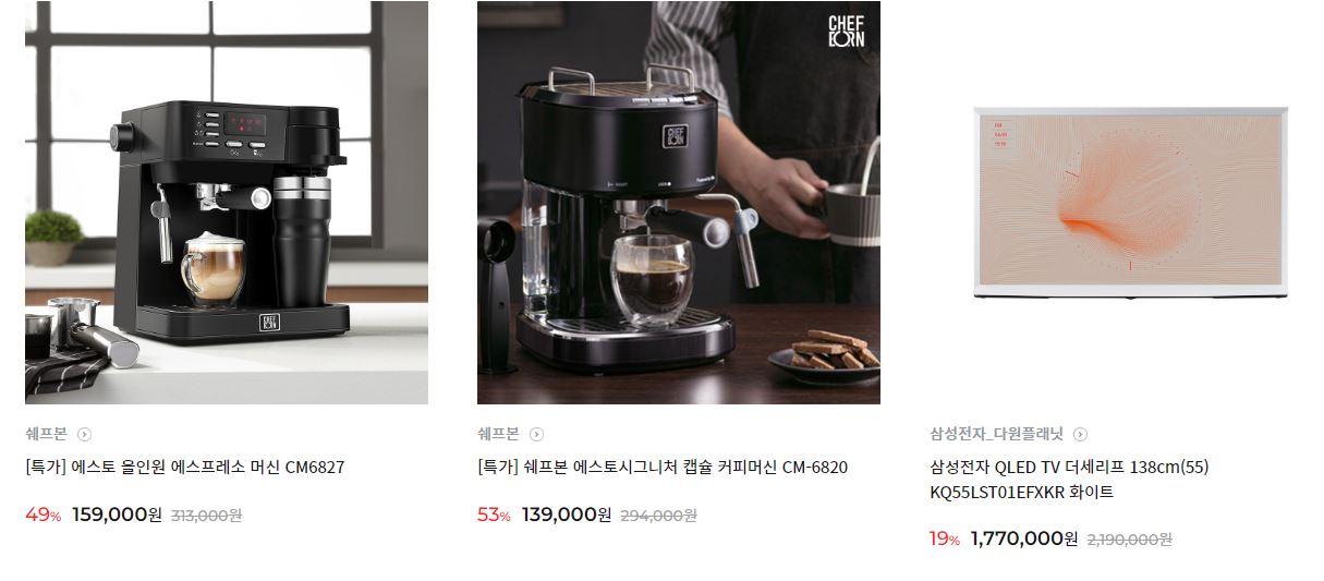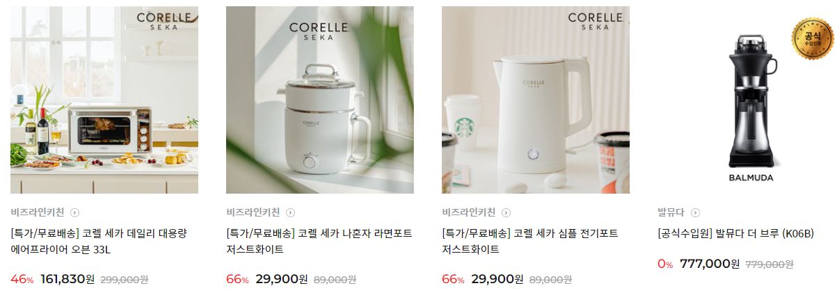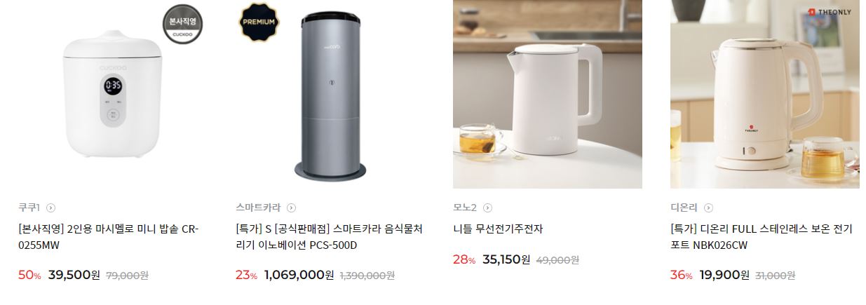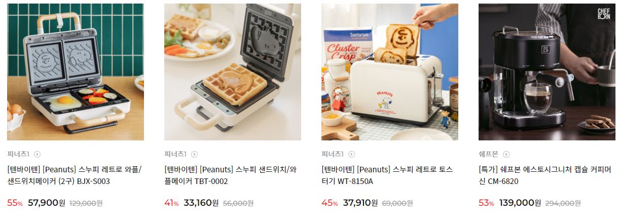 할인 품목 : 토스터기, 전기포트, 커피머신 등