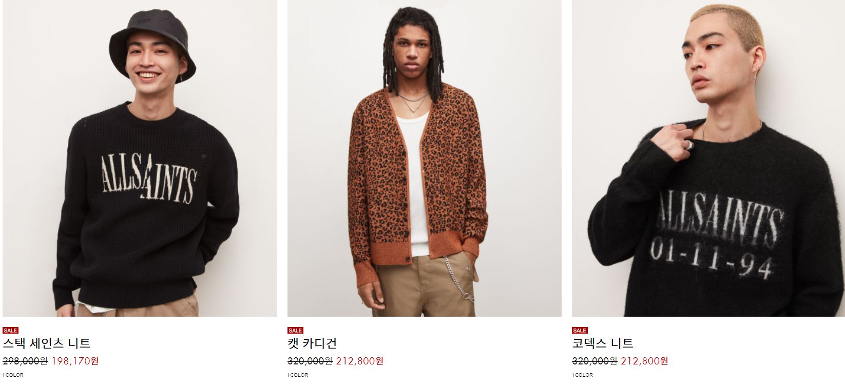 올세인츠 다양한 제품을 할인 판매하네요.