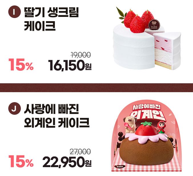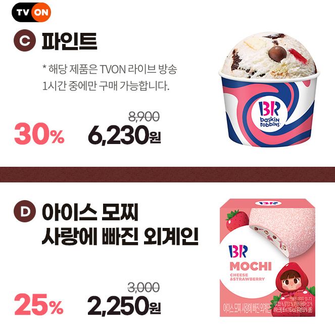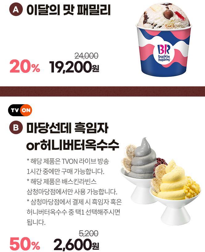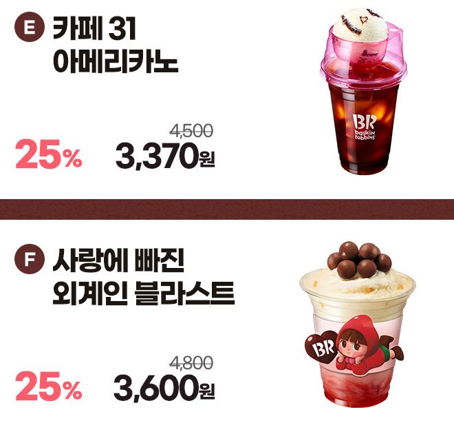 배스킨라빈스 다양한 메뉴를 할인 판매하네요.
