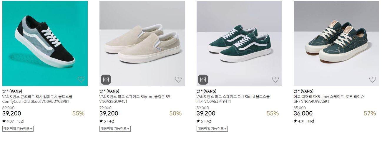반스 다양한 제품을 할인 판매하네요.