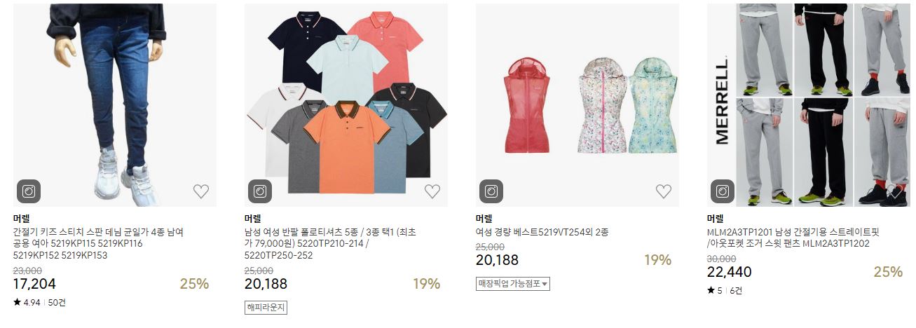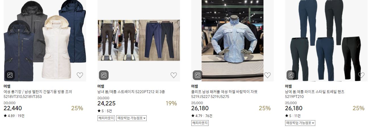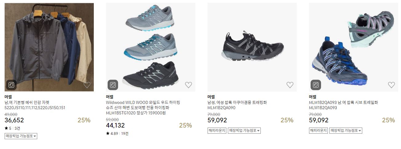 머렐 다양한 제품을 할인 판매하네요.