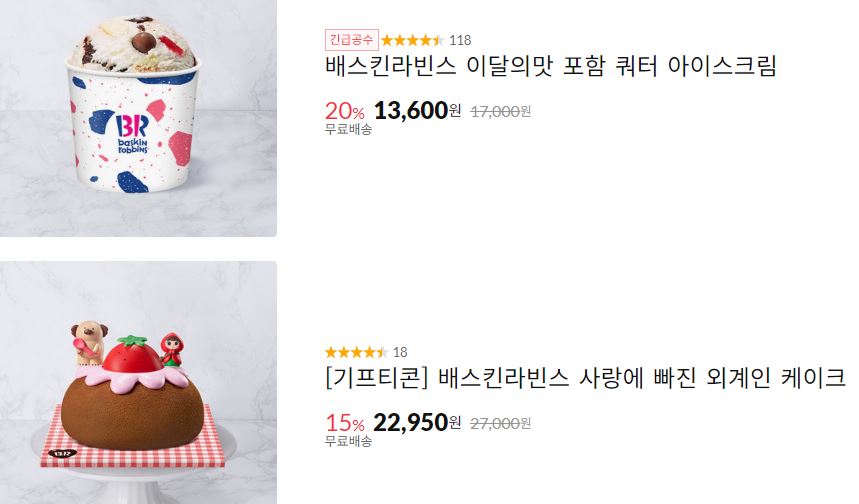 할인 브랜드 : 배스킨라빈스, 피자헛, 버거킹 등