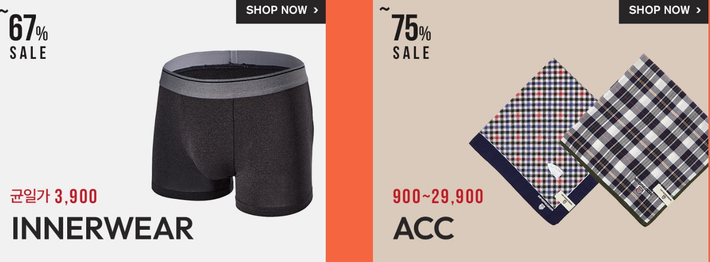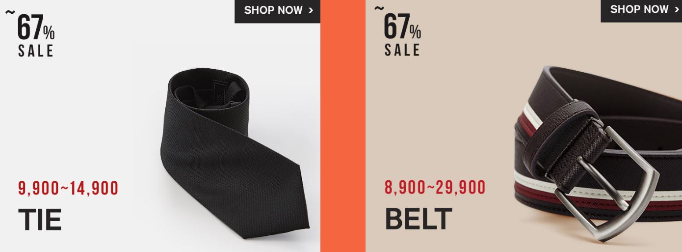 할인 품목 : 넥타이, 벨트, 가방 등