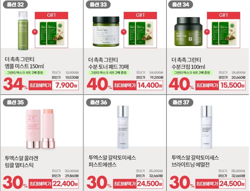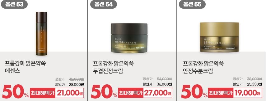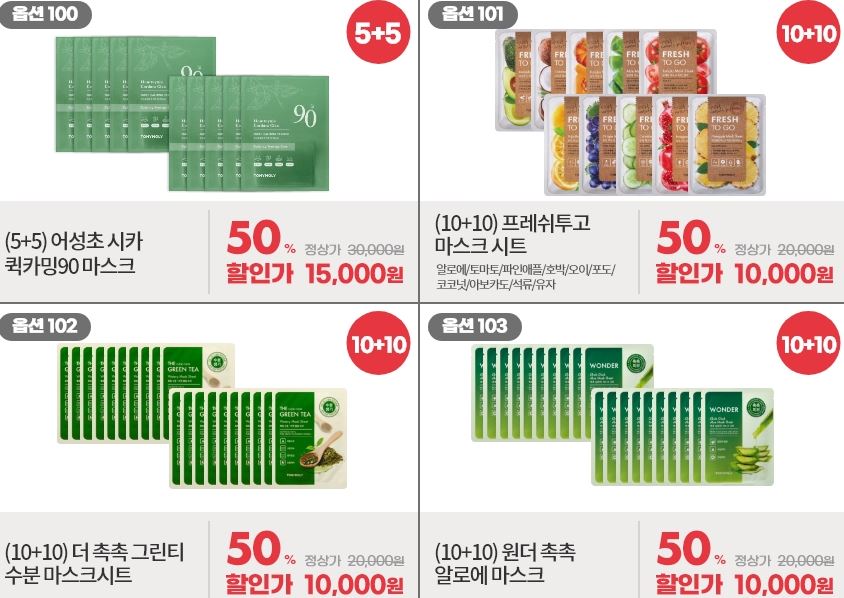 할인 품목 : 마스크팩, 수분크림, 에센스 등