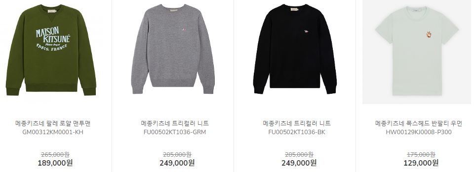 메종키츠네 다양한 제품을 할인 판매하네요.