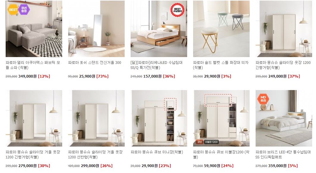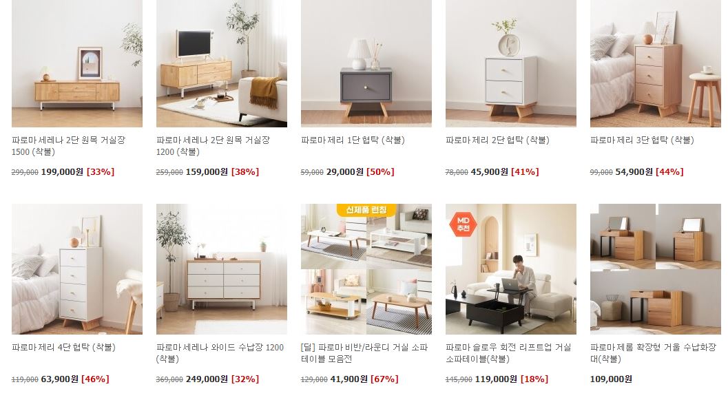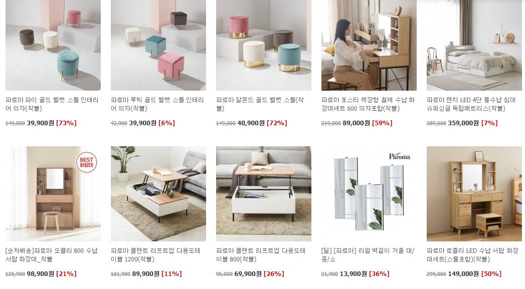 파로마 가구 다양한 제품을 할인 판매하네요.