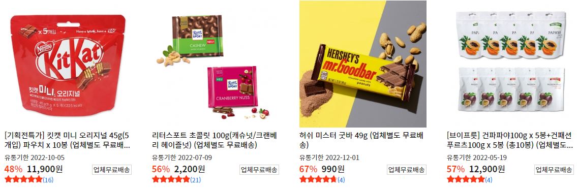 할인 품목 : 초콜릿, 쿠키, 스낵 등