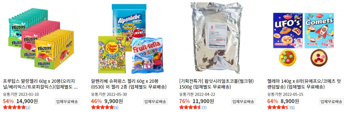 할인 품목 : 초콜릿, 쿠키, 스낵 등