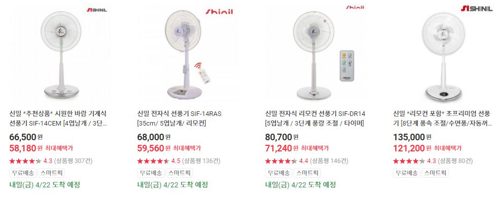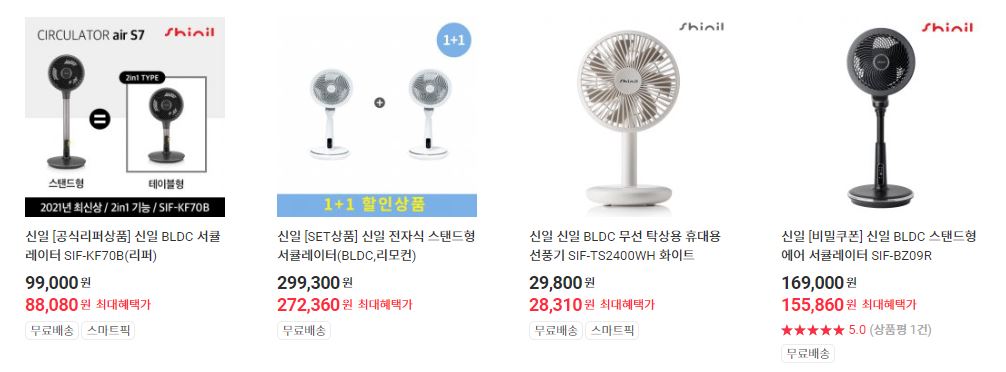 신일 다양한 제품을 할인 판매하네요.