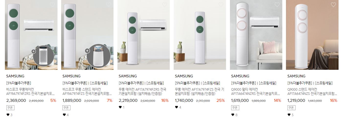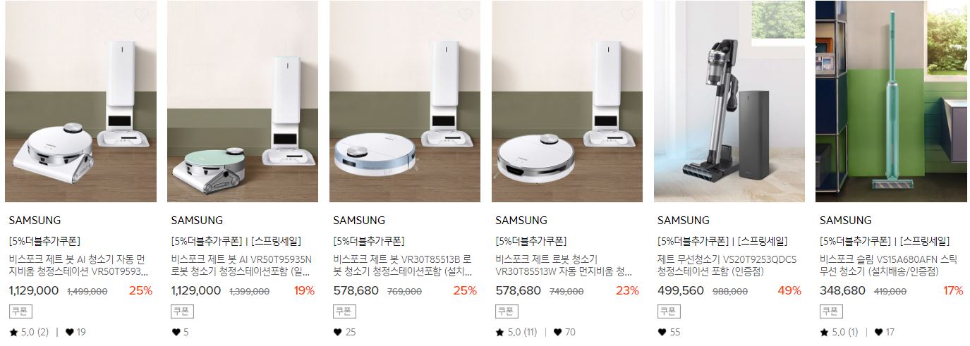 할인 품목 : 청소기, 에어컨, 휴대폰 등