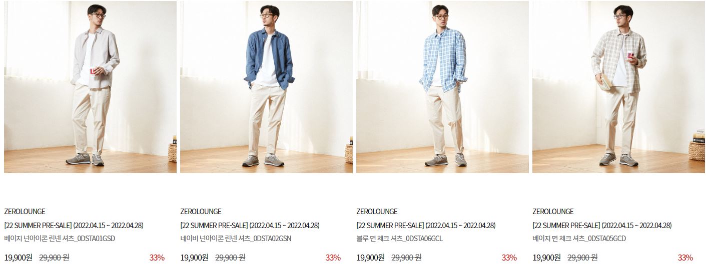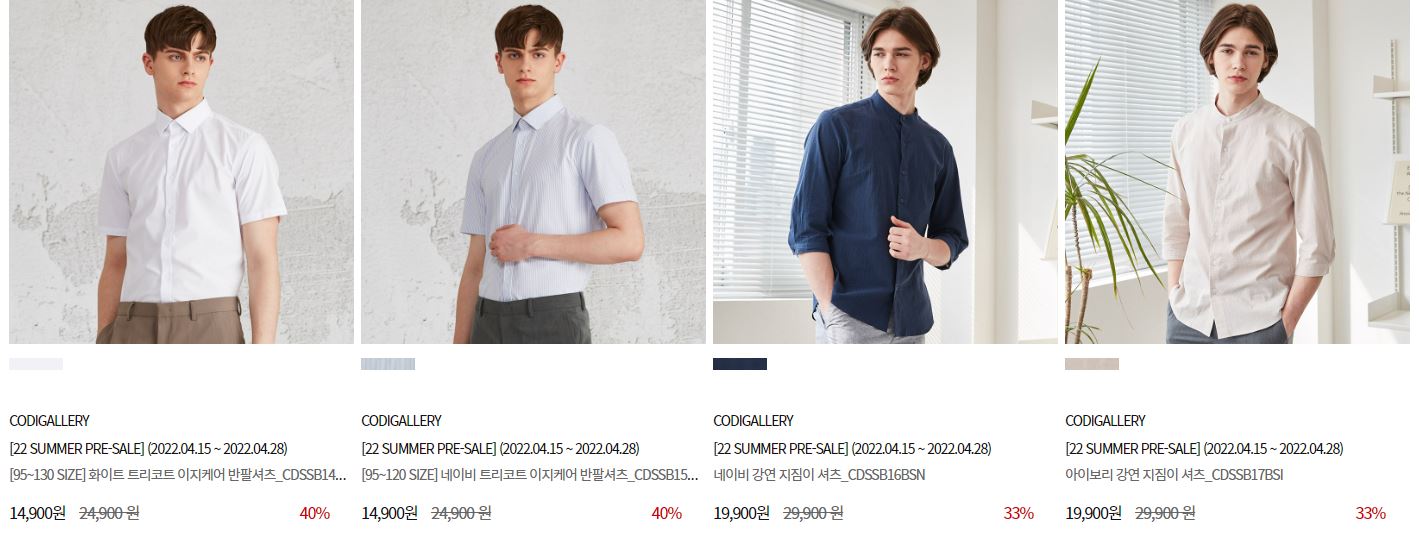 할인 품목 : 티셔츠, 팬츠, 셔츠 등