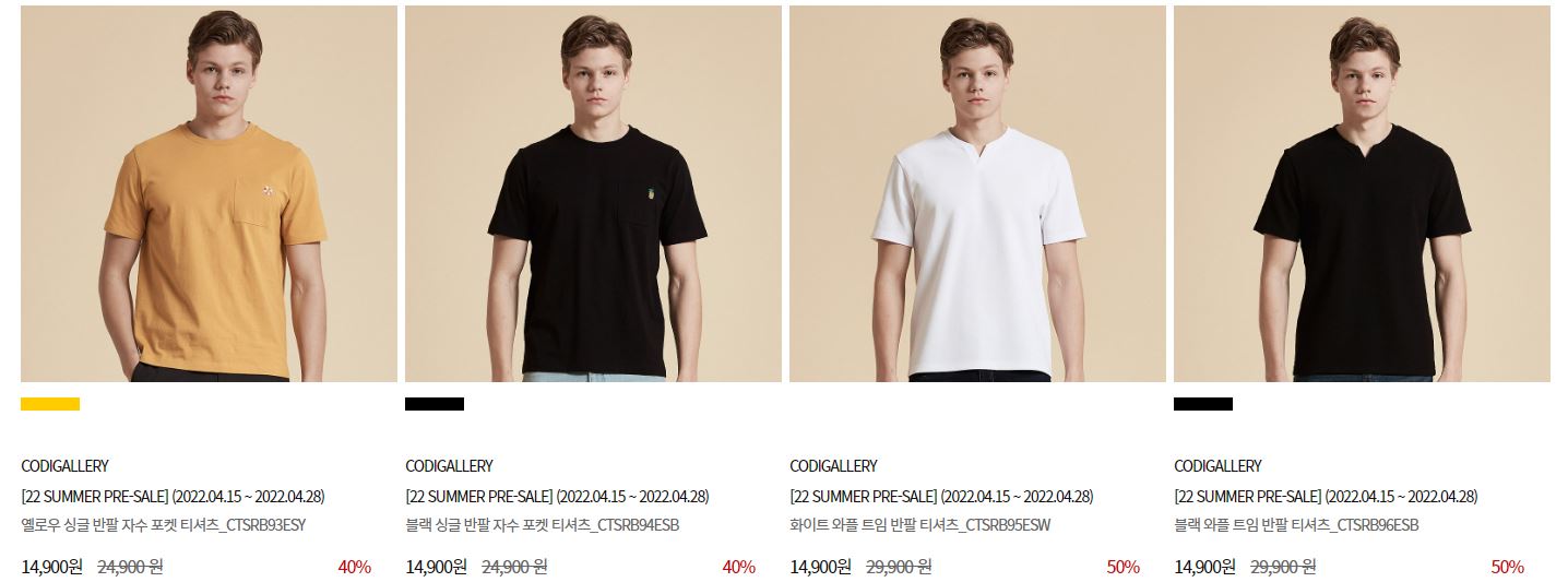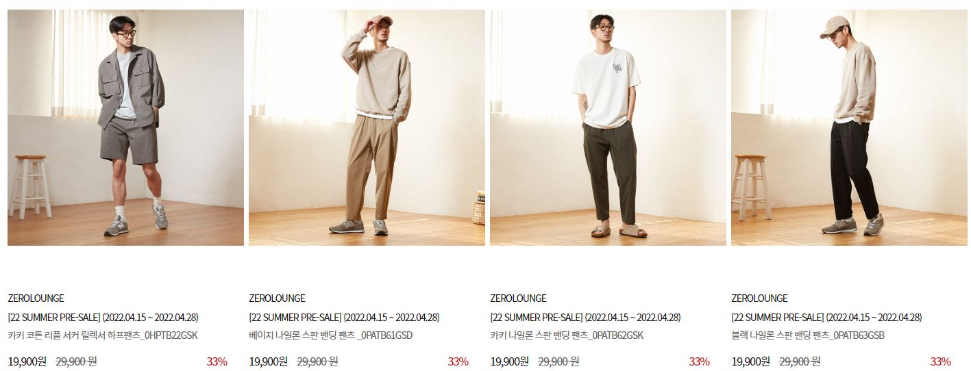 할인 품목 : 티셔츠, 팬츠, 셔츠 등