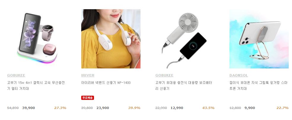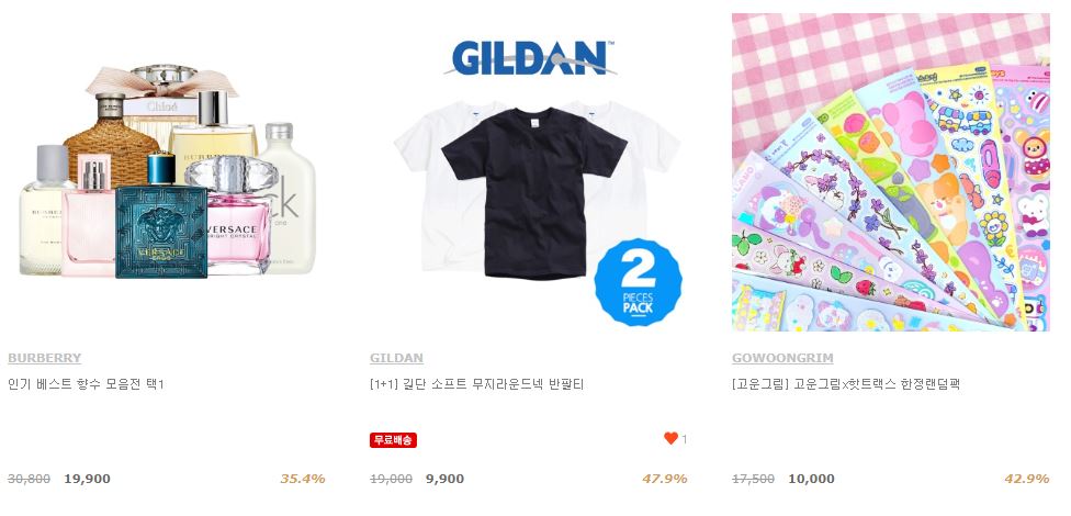 할인 품목 : 티셔츠, 향수, 보조배터리 등
