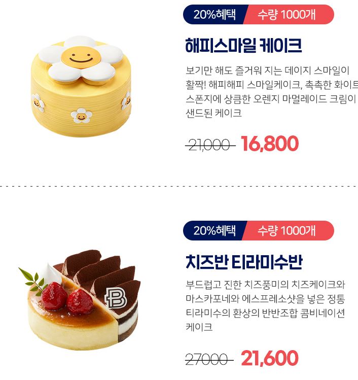 할인 품목 : 해피스마일 케이크, 치즈반 티라미수반 등