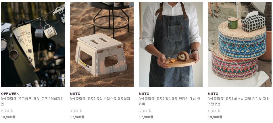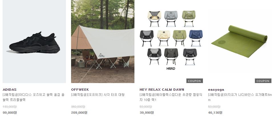 할인 품목 : 캠핑용품, 운동화, 레깅스 등