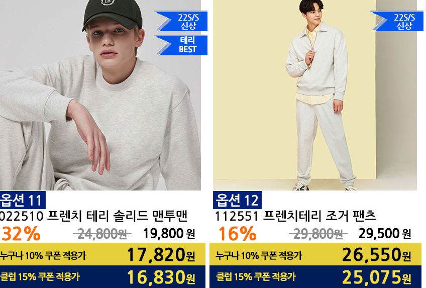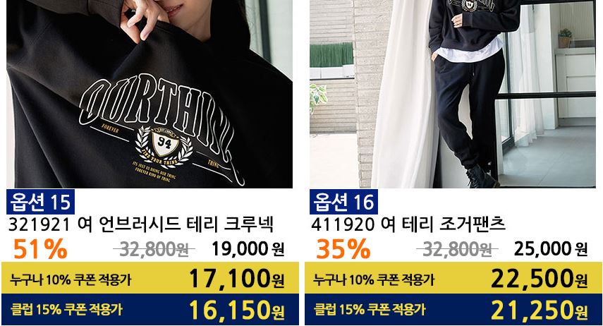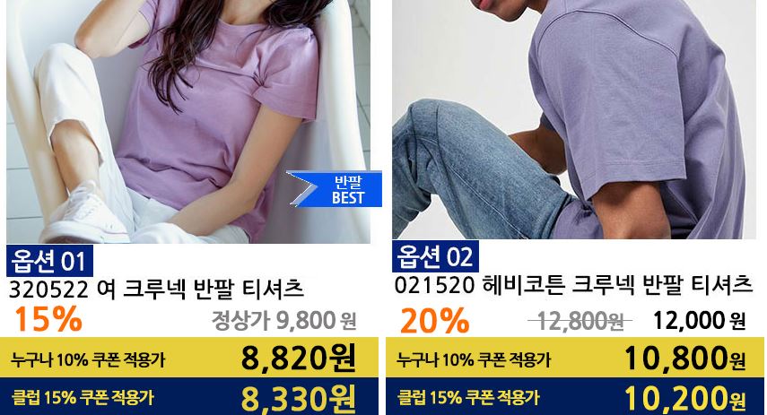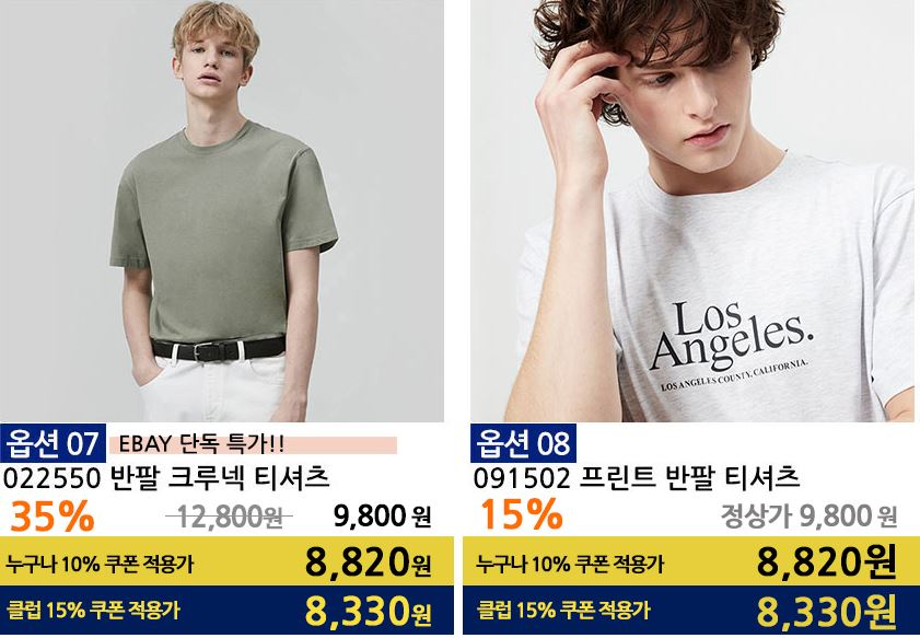 할인 품목 : 티셔츠, 팬츠 등