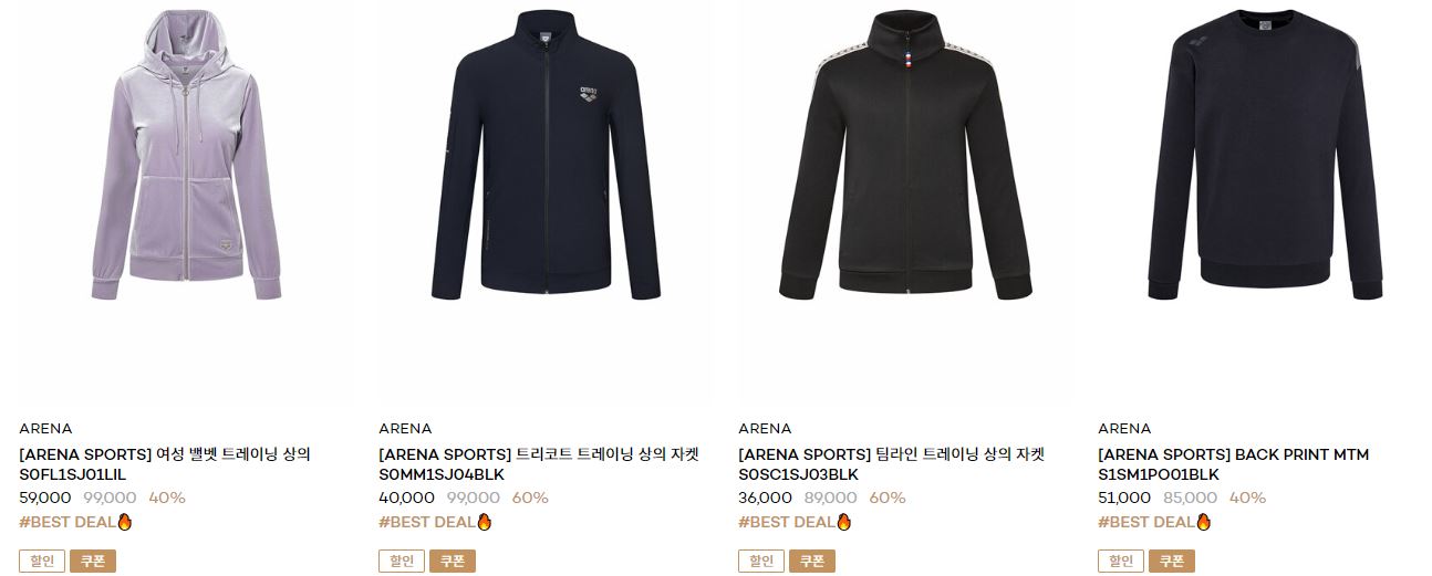 할인 품목 : 티셔츠, 팬츠, 운동화 등