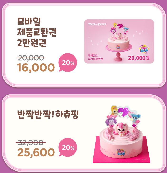 할인 품목 : 모바일 제품교환권, 반짝반짝!하츄핑 등