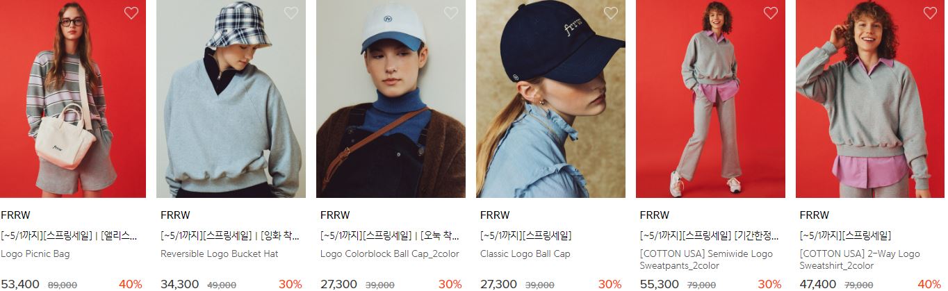 할인 품목 : 블라우스, 티셔츠, 모자 등