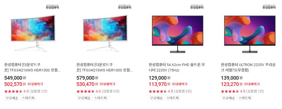 한성컴퓨터 다양한 제품을 할인 판매하네요.