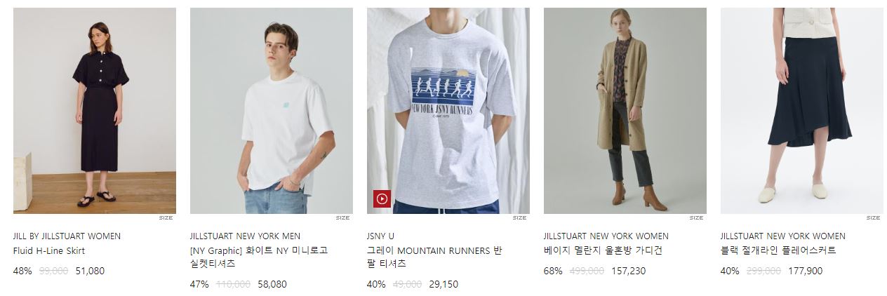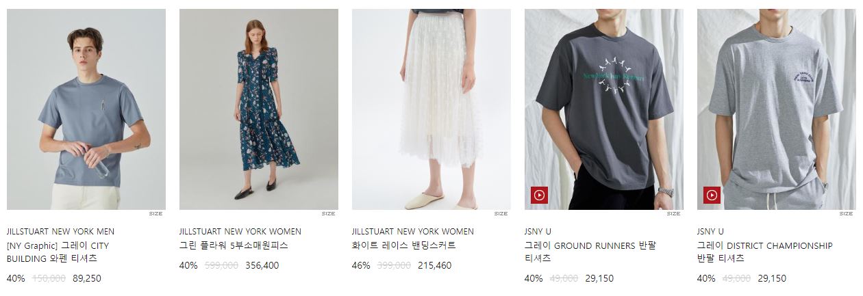 할인 품목 : 티셔츠, 원피스, 팬츠 등