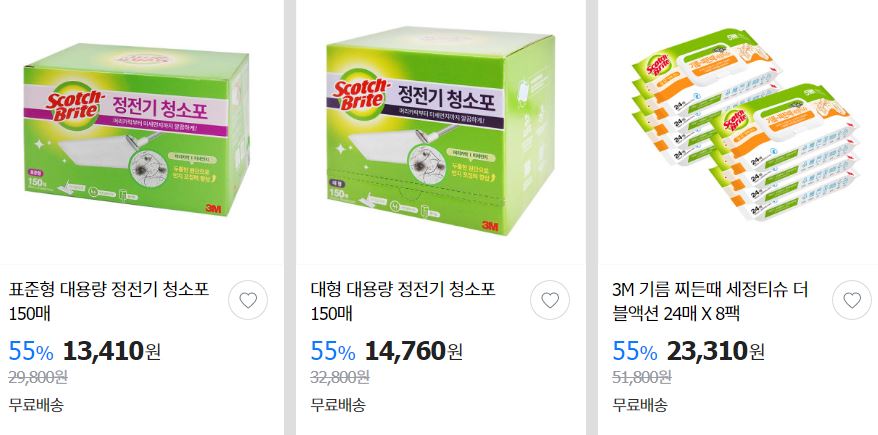 할인 품목 : 청소포, 세정티슈 등